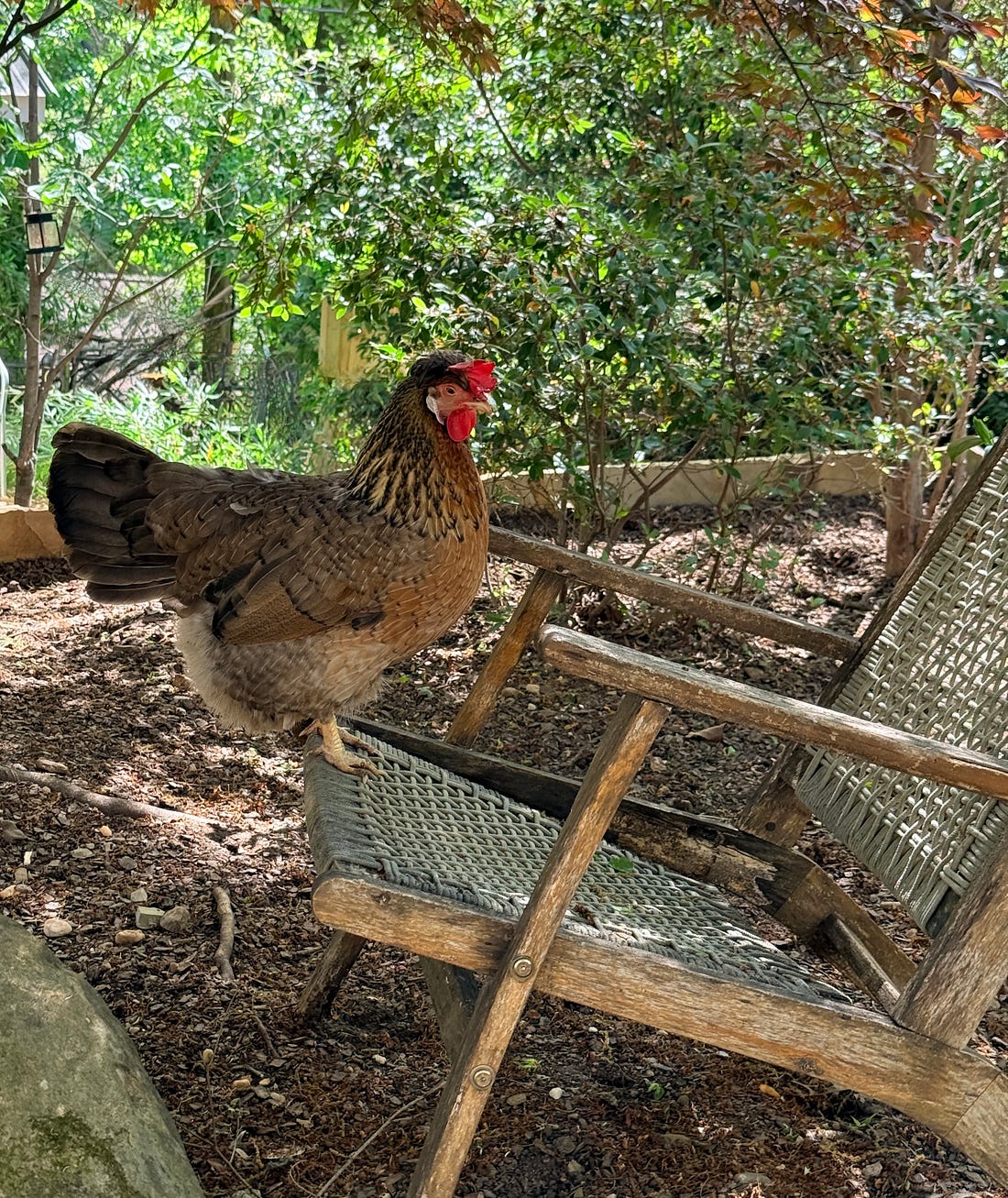 I’m out tonight, which means y’all get the night off. Also, you get chickens. It’s warming up here, and I’m hoping to get some spring coop cleaning, garden planting, and touch-up painting done in the next few weeks. The chickens follow my progress as I survey what needs doing, and Pickles seems acutely aware of when there’s a camera pointed at her. She is a stunner! Today is the start of the annual bamboo feast, where we cut down some of the tender young shoots and let the girls go to town. It’s high in protein and always seems to help the last feathers grow back in at the end of their molt. I’m ready for my fluffy girls again, after watching them try to grow out some very bedraggled-looking feathers these last few weeks. This sweet girl, the smallest of our chickens, ends up in over her head in the bamboo forest, but she really loves it. But I’m pretty sure she’s ready for her true favorites, basil and cucumbers, so I’m hoping my seedlings are ready to go outside this week. Enjoy your night off! We’re in this together, Joyce You're currently a free subscriber to Civil Discourse with Joyce Vance . For the full experience, |