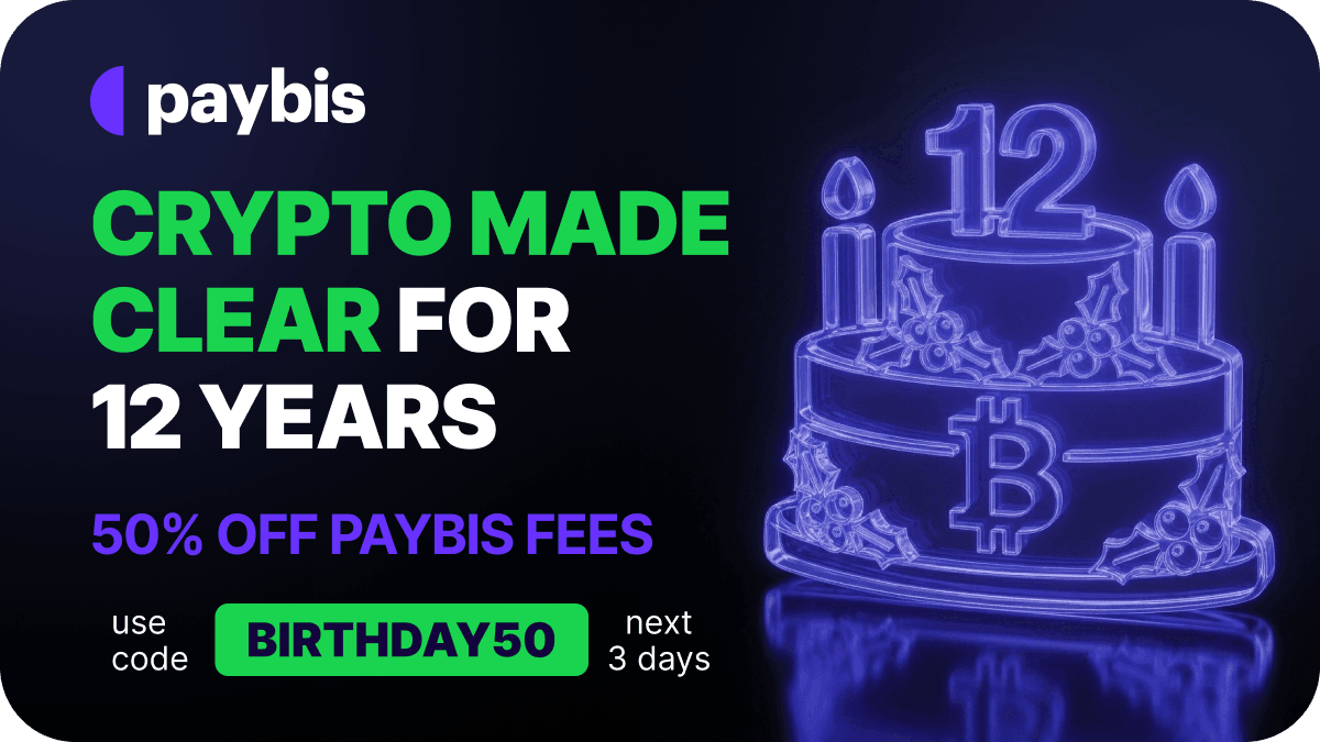 We’re giving you 50% OFF your Paybis exchange fees for your next buy, sell, swap, or send - any type of transaction!