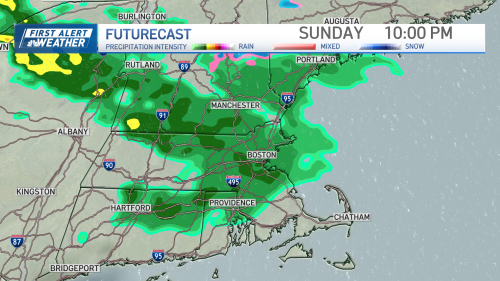 Winds turn around again, coming in off the Atlantic by the afternoon. The water temperature not too far offshore is about 42 degrees. With a wind off that cold water, it’ll send a chill up and down the coast. We’ll barely nudge into the 50s. It becomes mostly cloudy in the afternoon. Rain showers arrive after the sun goes down. Those showers hang around after midnight. |