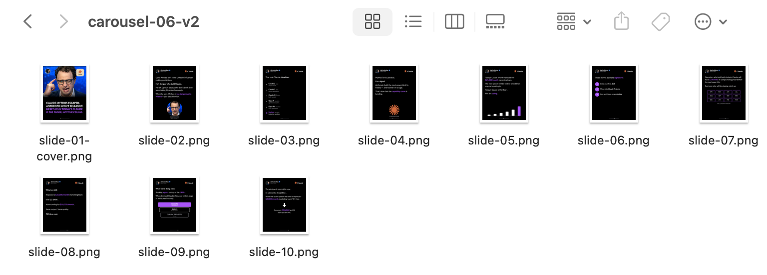 By the time I landed, I had a full Instagram .Skill that writes, designs, and produces complete carousels. Ready to post.