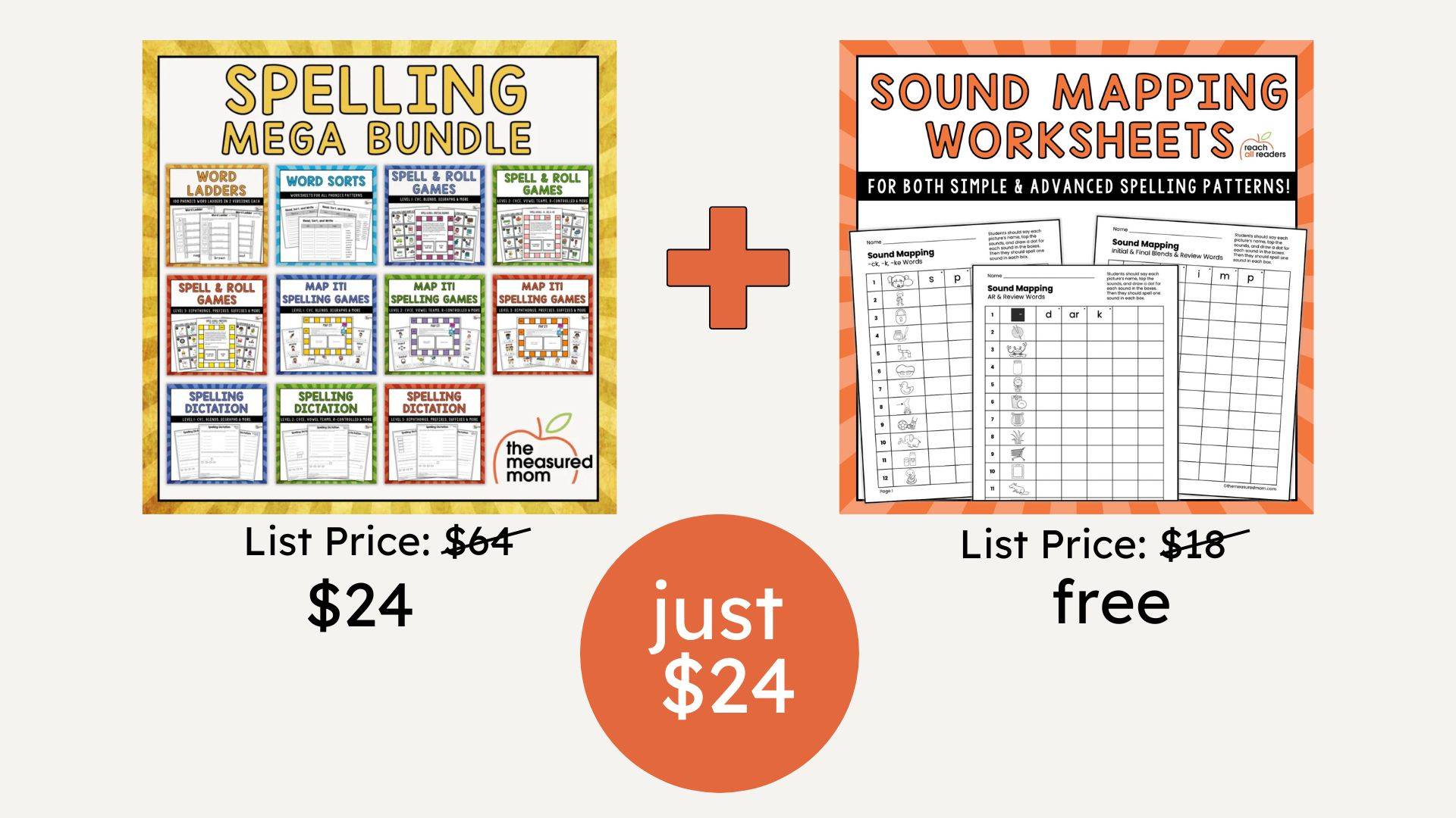 P.S. This special flash sale includes word ladders, spelling games, dictation worksheets, words sorts, AND new sound mapping worksheets. Save over 60% and buy now.