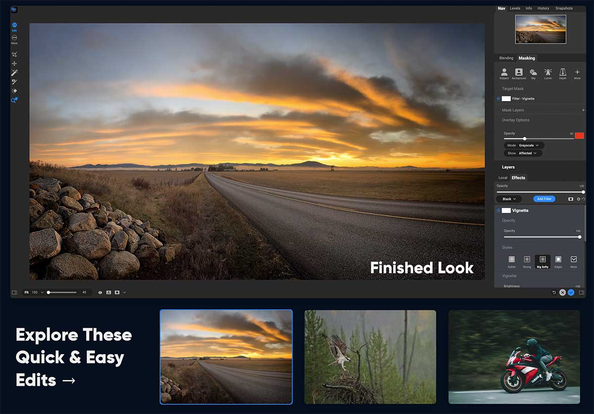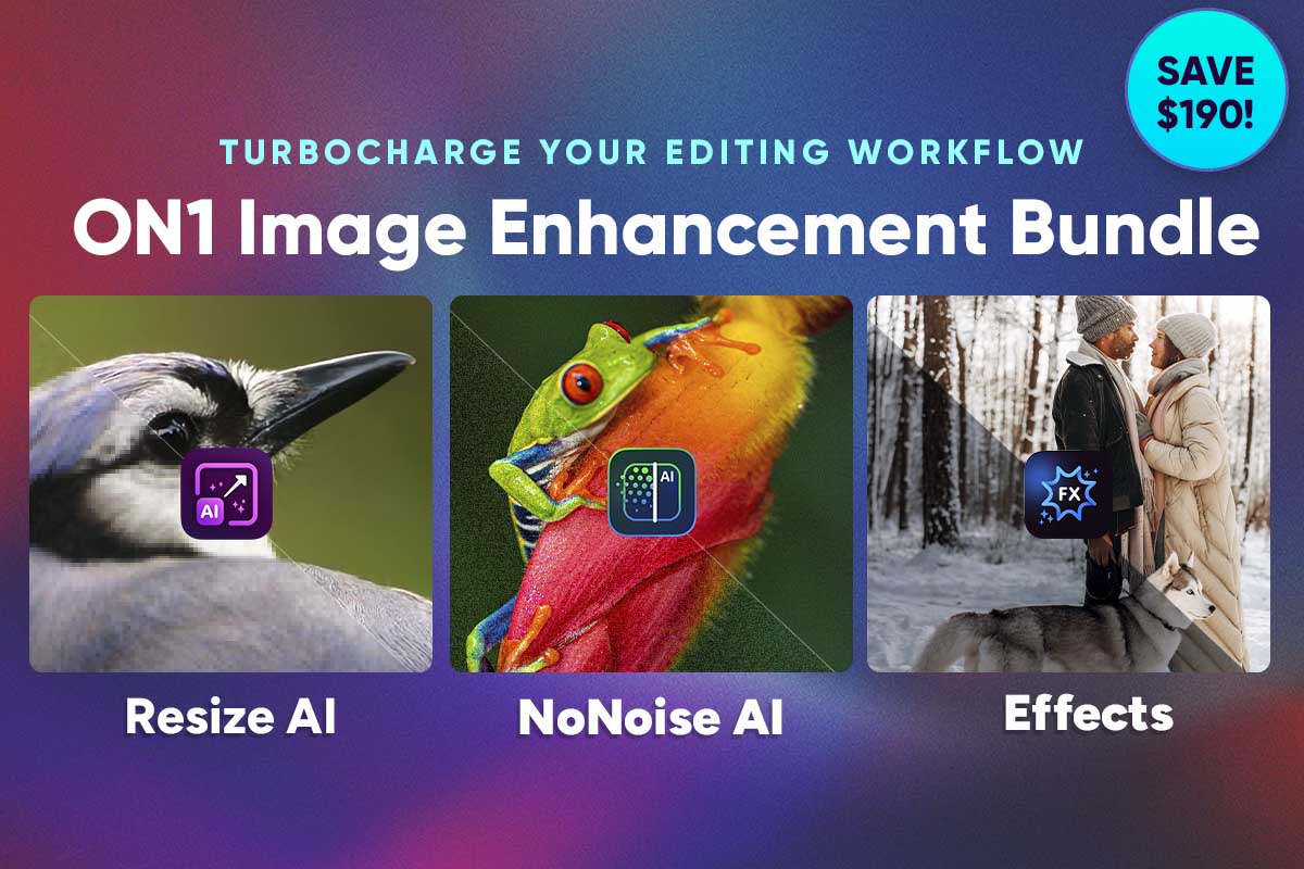 Get ON1 Resize AI, Effects, and NoNoise AI together in one powerful bundle. They work as standalone apps too, giving you even more workflow flexibility.