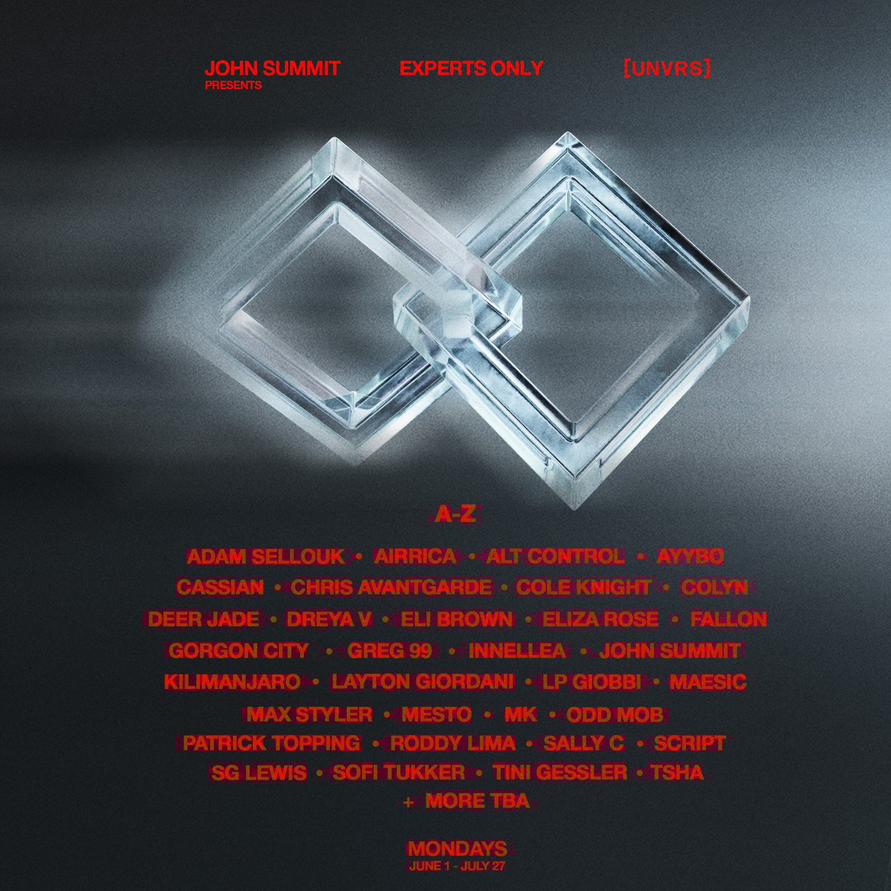 AYYBO, Sofi Tukker, TSHA and more announced for John Summit Presents Experts Only, which runs Mondays 01 June - 27 July. |