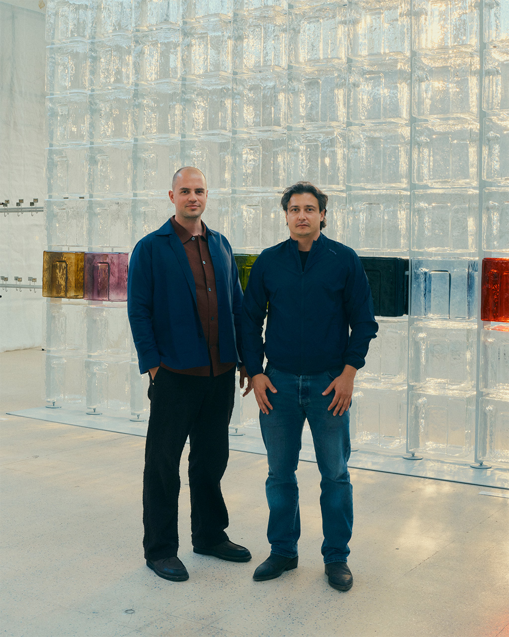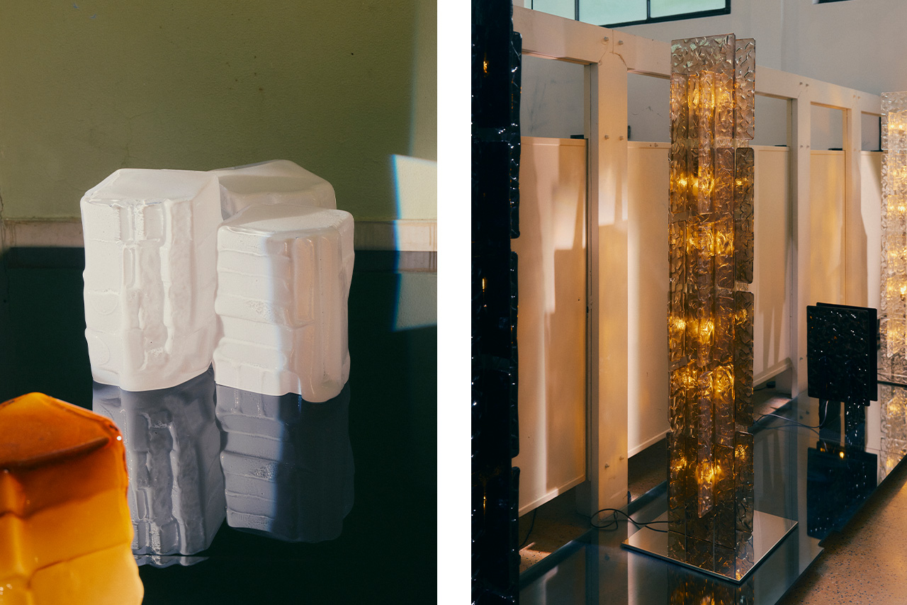 The scale of this year’s hangar-like location allowed the pair to showcase more architectural projects (a direction 6AM first started to explore at Dropcity back in 2024). A stand-out is a glass wall made from individual blocks called “Batch”, which were first used in a fashion project with Bottega Veneta. New colours for the Paysage lamp, designed by Hannes Peer (who has also created a vast ceramic wall at Fondazione Officine Saffi), were also unveiled.