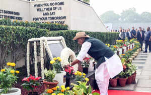 Defence Minister Rajnath Singh on Tuesday laid a wreath at the National Police Memorial in New Delhi on the occasion of Police Commemoration Day. It w...