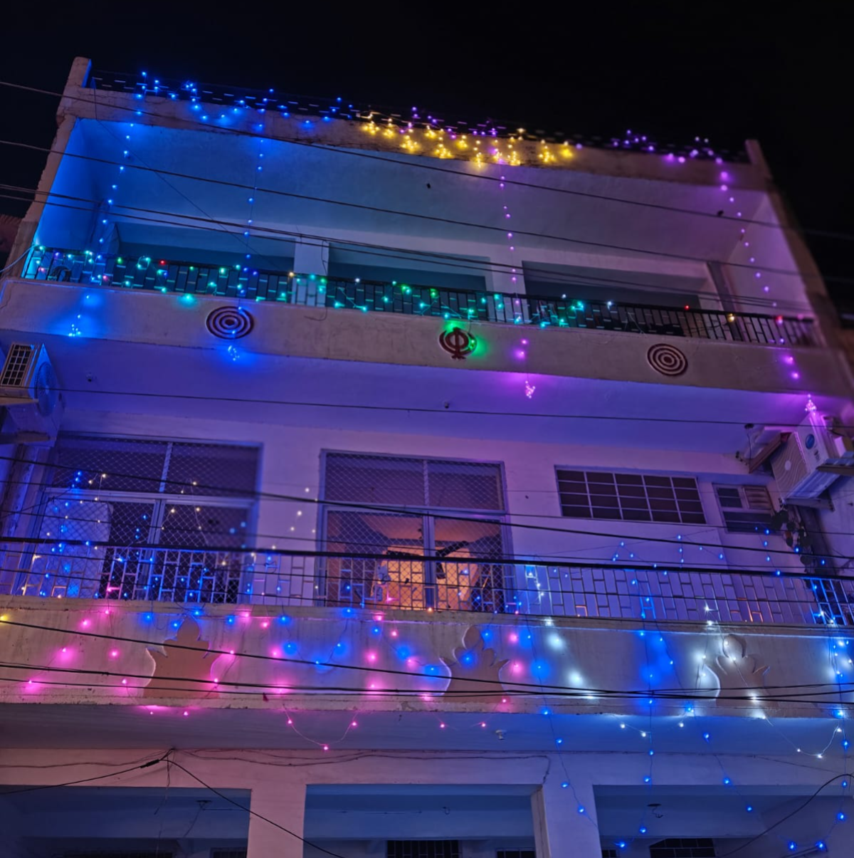 Our Jaipur house all lit up for Diwali, the lights never fail to make it feel