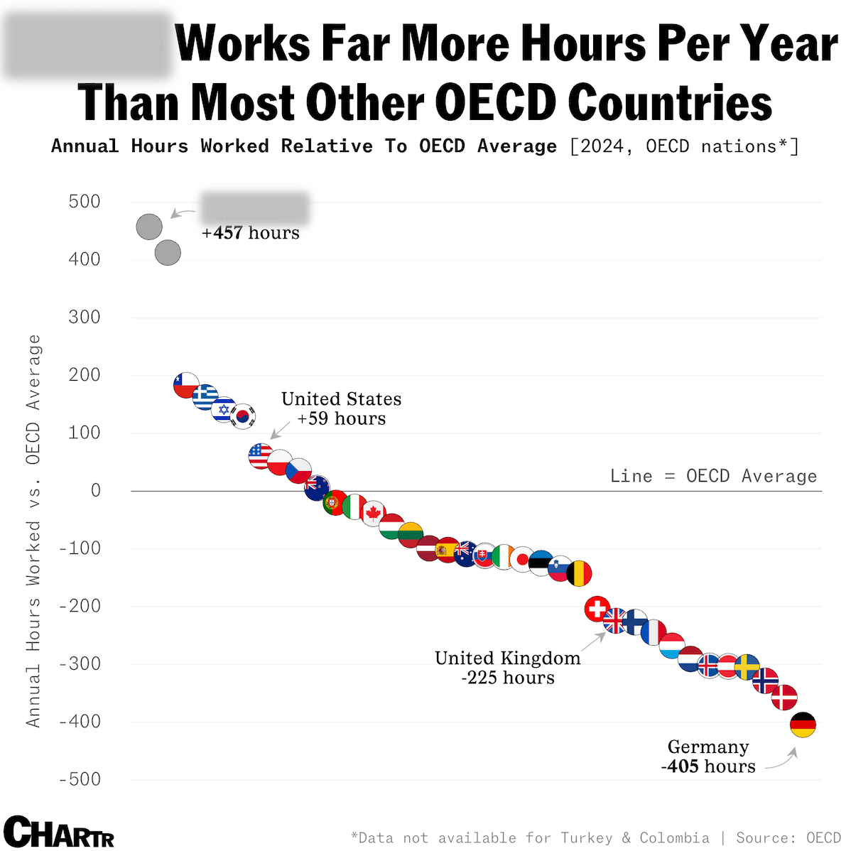 Off the charts: Employees in which OECD country rack up the most hours of work on average per year? [Answer below]. |