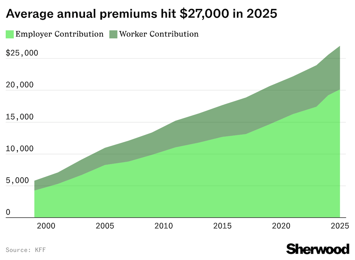 Premiums for employer-provided health insurance plans reached nearly $27,000 this year, and are expected to rise even more in 2026 as the cost of healthcare in America continues to tick up.
