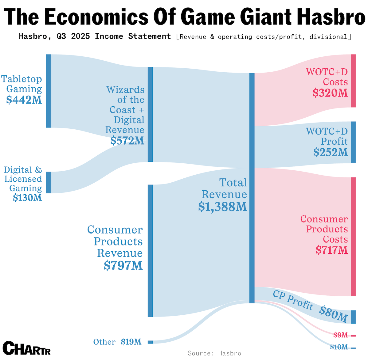 Hasbro, the company behind iconic games like Monopoly, Trivial Pursuit, Risk, Yahtzee, and Clue, scored some serious points with investors this week, as revenue climbed 8% year-over-year to top $1.4 billion — a result powered less by plastic toys and more by pixels and cards.