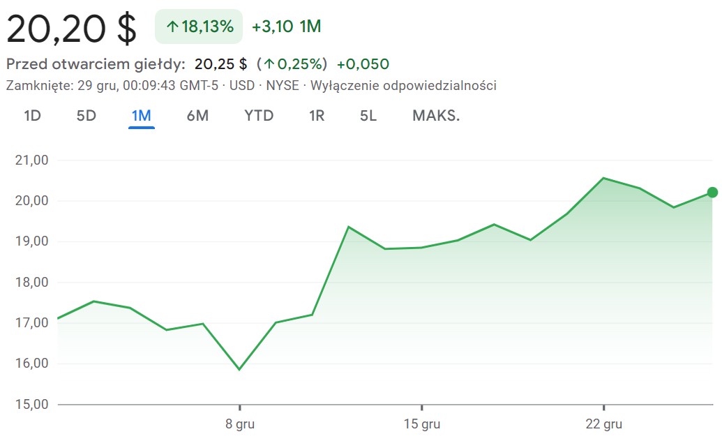 Hecla Mining to firma wydobywcza, dlatego jej kurs często porusza się razem z ceną srebra. Droższe srebro = potencjalnie lepsze wyniki.