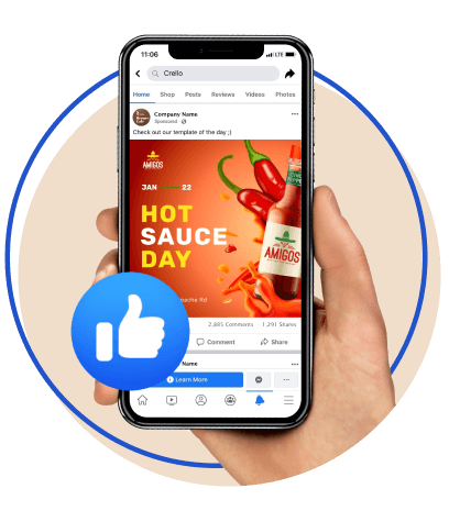 | Post na Facebook | | Nigdy więcej nudnych postów na Facebooku. Przygotuj treści na Facebook zachęcające do polubienia, a obserwujący na pewno zauważą Cię na swojej osi czasu. | | | | | Okładki na Facebook | | Okładki na Facebooku mogą z powodzeniem wzywać do działania, ogłaszać wydarzenie albo być po prostu dobrze wyglądającą animacją. Zrób okładkę przekazującą historię w VistaCreate. | | | | | Reklama na Facebook | | Twórz animowane i statyczne reklamy na Facebook korzystając z profesjonalnie zaprojektowanych szablonów i ogromnej biblioteki mediów. Skutecznie docieraj do odbiorców i zwiększ współczynnik konwersji. | | | | | Nieograniczone możliwości projektowania | | W planie Pro otrzymujesz dostęp do nieograniczonej przestrzeni na swoje projekty, nieograniczonej liczby zestawów marki oraz ponad 50 milionów zdjęć, wideo Full HD i wektorów, wraz z muzyką, animacjami i innymi kreatywnymi zasobami, potrzebnymi do projektowania najwyższej klasy treści dla firmy. | | | | |