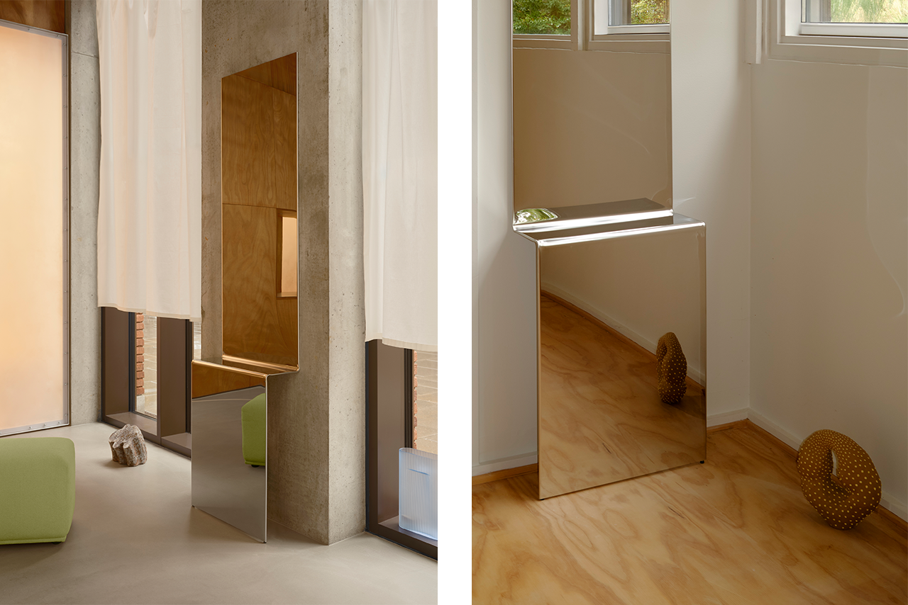 The designer, who has a background in mechanical engineering, discovered the material during a workshop visit and began to explore its sculptural potential soon after. Scaled to echo a doorway’s proportions, the mirror’s folded form adds depth and shifts with changing light, making it ideal for those seeking a functional piece that doubles as architectural art in residential or commercial spaces. muuto.com