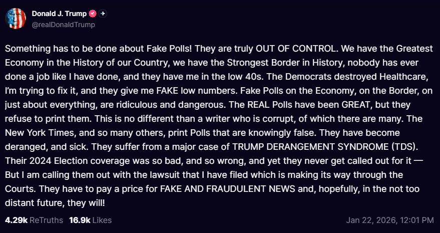 Hey fam, JVL here. On Monday you’ll see something new in Morning Shots: an ad. We’ve never done ads in print products before, so this is an experiment. Maybe it’ll work; maybe it won’t. I just want to explain our thinking. We have always tried to keep the vast majority of what we do free and open for everyone. That includes this newsletter, which is never locked for subscribers. We can do that because Bulwark+ members support us. But we keep growing and adding new voices and new products—Mark Hertling and Catherine Rampell are the two latest—and we want to do even more. If you’re getting Morning Shots for free, then putting up with an ad is how you can support us, too, and contribute to our ability to grow and try to put a dent in the universe while everything is going to hell. So, you know, thanks for that? Anyway, Bulwark+ members won’t get ads in their newsletters, so if you hate ads, then joining us is the other way to support our mission. However you do it—by joining Bulwark+, by sharing our stuff, or even just by reading Bill and Andrew—we’re grateful for your support. Thanks. —JVL You don’t really get the sense these days that Donald Trump views his authoritarian outbursts as a limited resource, something he can only indulge in so much before he’s wasted all his political capital. Here he was yesterday on Truth Social, fuming about how much he wants to make it illegal to publish “fake polls”: “Fake and Fraudulent polling should be, virtually, a criminal offense,” he went on in a follow-up post. “I am going to do everything possible to keep this Polling SCAM from moving forward!” Happy Friday. Always the Last Place You Look…by Andrew Egger Yesterday I reported a remarkable new development in the story of ChongLy Thao, the U.S. citizen whom ICE took half-naked from his Minnesota home last weekend. ICE had claimed it had been looking for a pair of migrant sex offenders at Thao’s address; in repeated social-media posts, the Department of Homeland Security said the men were still loose in the streets and asked people to call in tips. But they should have known exactly where to find at least one of the migrants in question, Lue Moua: He’s in state prison on a felony kidnapping conviction, and has been since 2024.