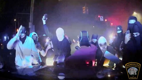 Seventeen people have been charged in an October street takeover in Randolph, Massachusetts, where masked members of the crowd surrounded police cruisers and set off fireworks. Police say on Oct. 5, 2025, officers responded after a large crowd gathered at the intersection of North Main and Oak streets. Investigators determined that the participants were blocking the road so drivers could perform stunts like donuts in the roadway. The first officer who arrived was surrounded by the crowd that blocked him from the intersection. Dash camera footage shows a group of masked people approaching the vehicle, blocking it with their bodies, hitting and jumping on the hood and setting off fireworks. |