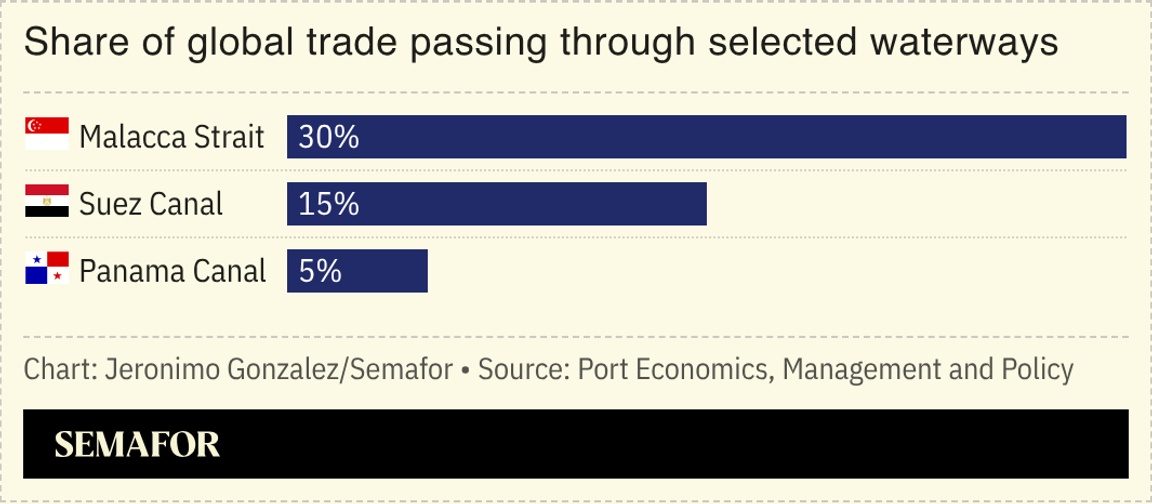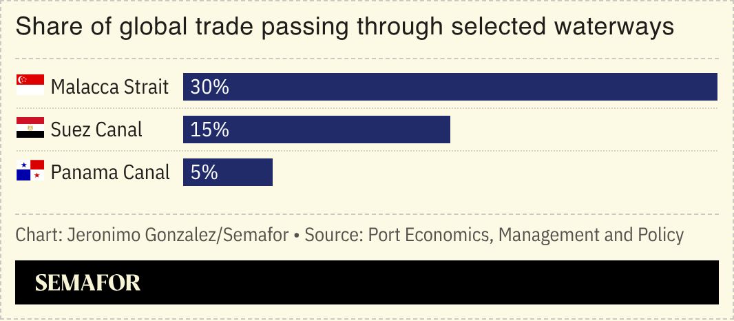 The Iran war has sent prices for crossing the Panama Canal to record highs as Asian oil and gas buyers seek new routes through which to source energy, though analysts cautioned the waterway risks becoming another global chokepoint. Auction prices for some crossings jumped almost tenfold after Iran and the US effectively shut the Strait of Hormuz, through which 80% of Asia’s oil imports passed before the war. The Iran war has underscored how reliant the global economy is on certain passages — virtually all seaborne trade passes through just five waterways — raising fears of their vulnerability: If the Malacca Strait were to close, the Hormuz shutdown would be “just a dry run” by comparison, Singapore’s foreign minister said.