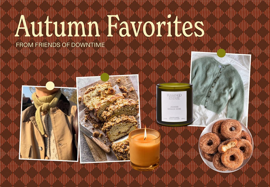 Today’s issue is a cozy one, filled with fall favorites from Downtime readers and some of my favorite Substack newsletter writers: snacks, lots of recipes, tea and beverage picks, Trader Joe’s shoutouts, and one universal truth: everyone seems to love this one particular pumpkin chai candle…
