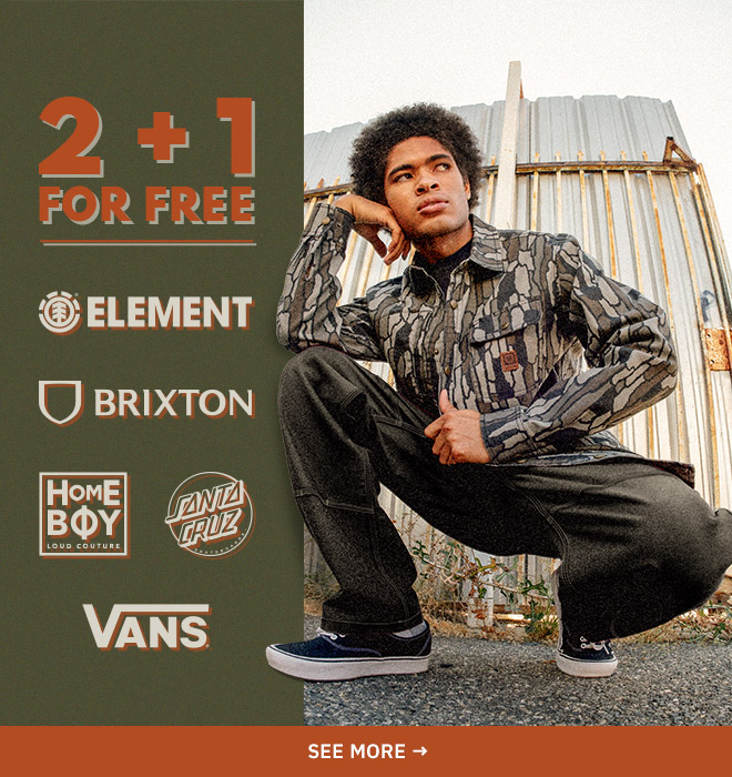 Pick any three products from Vans, Brixton, Element, Santa Cruz or Homeboy and pay only for two! The third (cheapest) product is completely free!