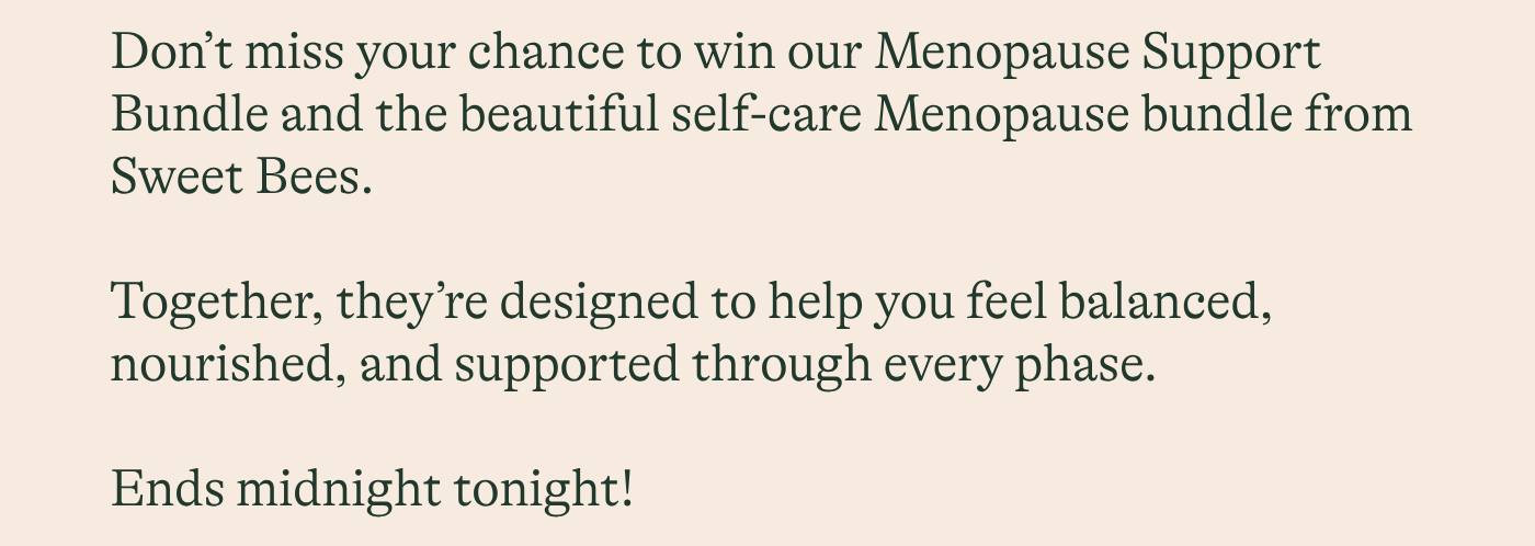 A little post-Halloween comfort and your last chance to win our Menopause Bundle! ͏ ͏ ͏ ͏ ͏ ͏ ͏ ͏ ͏ ͏ ͏ ͏ ͏ ͏ ͏ ͏ ͏ ͏ ͏ ͏ ͏ ͏ ͏ ͏ ͏ ͏ ͏ ͏ ͏ ͏ ͏ ͏ ͏ ͏ ͏ ͏ ͏ ͏ ͏ ͏ ͏ ͏ ͏ ͏ ͏ ͏ ͏ ͏ ͏ ͏ ͏ ͏ ͏ ͏ ͏ ͏ ͏ ͏ ͏ ͏ ͏ ͏ ͏ ͏ ͏ ͏ ͏ ͏ ͏ ͏ ͏ ͏ ͏ ͏ ͏ ͏ ͏ ͏ ͏ ͏ ͏ ͏ ͏ ͏ ͏ ͏ ͏ ͏ ͏ ͏ ͏ ͏ ͏ ͏ ͏ ͏ ͏ ͏ ͏ ͏ ͏ ͏ ͏ ͏ ͏ ͏ ͏ ͏ ͏ ͏ ͏ ͏ ͏ ͏ ͏ ͏ ͏ ͏ ͏ ͏ ͏ ͏ ͏ ͏ ͏ ͏ ͏ ͏ ͏ ͏ ͏ ͏ ͏ ͏ ͏ ͏ ͏ ͏ ͏ ͏ ͏ ͏ ͏ ͏ ͏ ͏ ͏ ͏ ͏ ͏