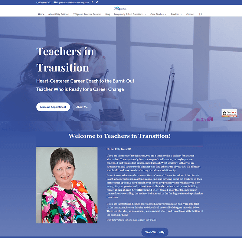 She took the Website Creation Workshop and was able to build her own website herself, TeachersInTransition.com - take a look...