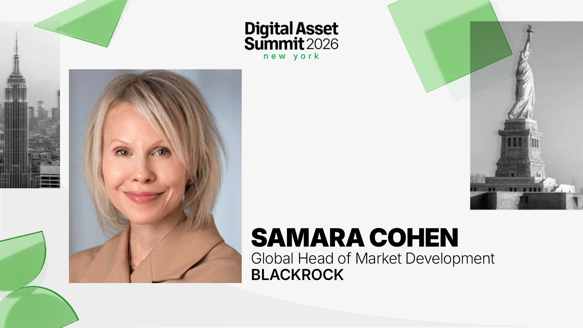 | Hear from BlackRock Executives at DAS NYC | Samara Cohen has played a monumental role in bringing BlackRock onchain. As former CIO of BlackRock iShares and current Global Head of Market Development, she is architecting and championing the push to move BlackRock’s $10T in AUM onchain. | | Hear from Samara and a host of other global leaders at the intersection of traditional finance and crypto rails. DAS NYC is the only ticket in town if you want to be under the same roof as leaders from BlackRock, JPMorgan, the U.S. SEC, Robinhood, Visa, and the world’s top funds. Reserve your spot at DAS NYC today! | | General Admission: $899 | VIP: $1,899 |
