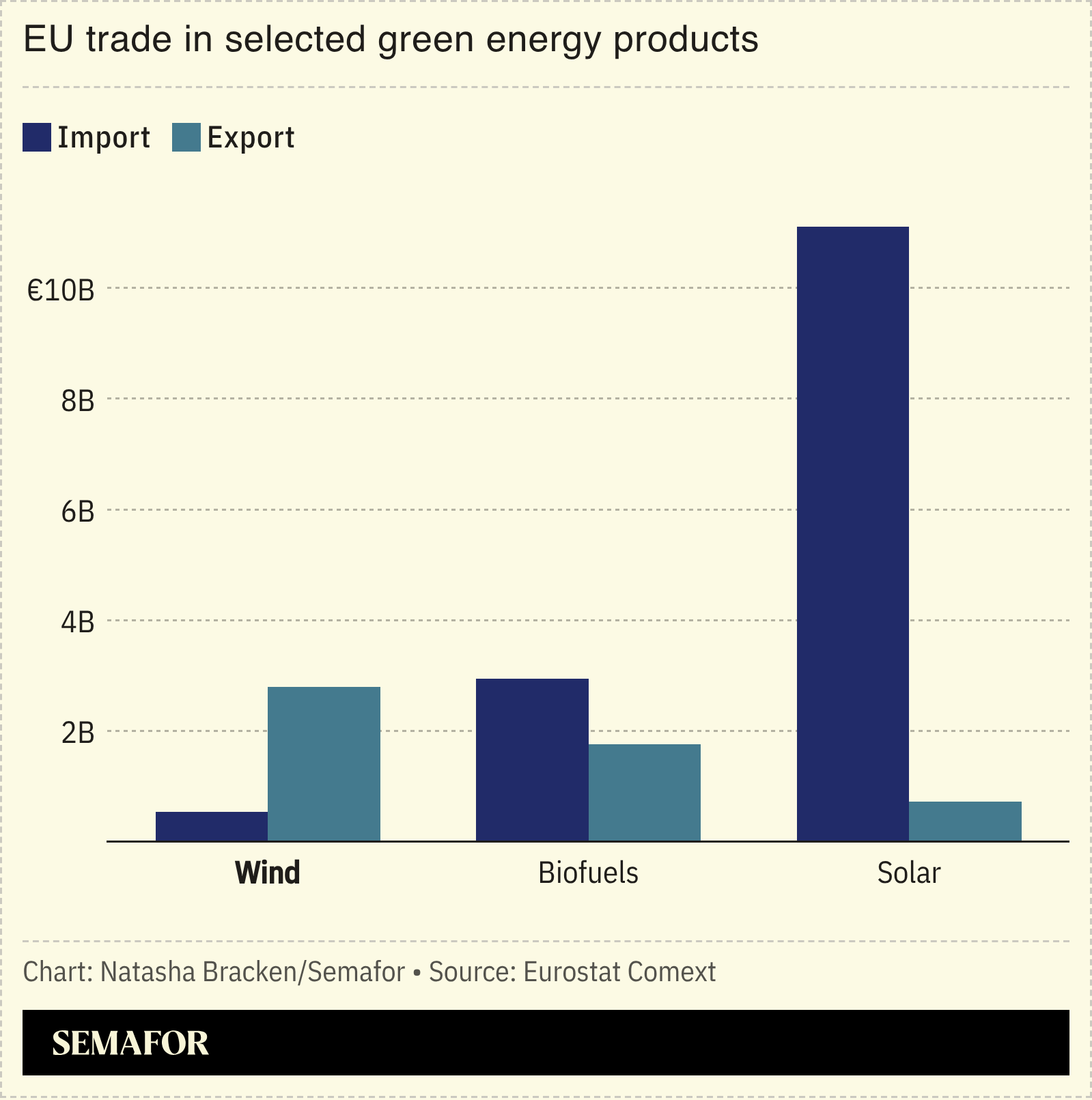 Geopolitical tensions won’t deter Chinese wind turbine manufacturers from expanding into Europe, a top executive at one of China’s biggest firms told Semafor. The remarks by Windey International CEO Yu Feng come with Beijing and Brussels appearing to calm a row over Chinese green exports to the EU, and with Germany’s leader visiting China this week, the latest of several European leaders to do so. Despite China’s global dominance in the wind sector, European capitals — wary of apparent security risks tied to using Chinese tech — have been reluctant to deploy the country’s wind turbines, prioritizing homegrown companies instead. But Yu was confident that Chinese wind turbines would arrive in Europe “sooner or later,” saying they were “irreplaceable” to the world. |