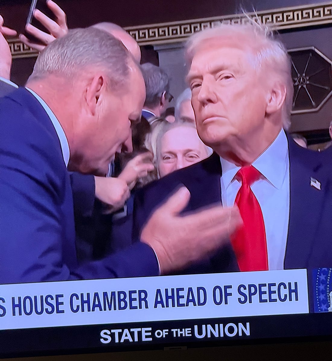 This morning, NPR reported that DOJ withheld “some Epstein files related to allegations that President Trump sexually abused a minor,” based upon review of document sets that revealed there were dozens of pages DOJ had indexed but not included in its public release. Release of those files is required by the Epstein Transparency Act. NPR says that they include “what appear to be more than 50 pages of FBI interviews, as well as notes from conversations with a woman who accused Trump of sexual abuse decades ago when she was a minor.” It was not an auspicious lead-in to Donald Trump’s State of the Union address, which he delivered this evening. He never acknowledged the Epstein survivors who were in the chamber. In Donald Trump’s world, federal agents didn’t kill Renee Good and Alex Pretti on the streets of Minneapolis or arrest five-year-old Liam Ramos. The headline for the speech? It was long and boring. Mediocre is a good way to characterize it. Trump didn’t have a stirring message or even just a nominally cohesive one to deliver. If you weren’t already in Trump’s camp, it’s unlikely you are now. Instead, he seemed to luxuriate in the spotlight like a show-off kid with a captive audience. Finally, it ended. I know I wasn’t the only one giving thanks. Trump seemed to stay mostly on his teleprompter. But the speech was full of lies—so obvious that we all caught them as they came out of his mouth, especially his claims about the economy, which were so off base that even his own folks cannot have missed them. We got an early answer to who on the Supreme Court would brave Trump’s ire over their tariffs decision earlier this week. Only Justices Roberts, Kagan, Kavanaugh, and Barrett showed up. Trump shook hands with them as he entered the chamber, but it wasn’t last year’s “thanks, I won’t forget it”-style shoulder slapping. It was much more perfunctory, and from the angle I saw it appeared that he may have skipped Amy Coney Barrett, who joined the majority that ruled against him. HHS Secretary Robert Kennedy looked pretty good for someone who recently acknowledged snorting cocaine off of a toilet seat. MSNOW anchor Stephanie Ruhle provided some sobering context, pointing out that Trump and his family will make over a billion dollars this term Congressman Al Green, who was censured last year for shouting at Trump that he didn’t have a mandate and brandishing his cane, was ejected from the chamber again this year, for holding up a sign that said that said “Black people aren’t apes.” Trump: “Our nation is back, bigger, better, richer, and stronger than ever before … this is the golden age of America.” Trump claimed that he inherited a broken nation but that now “a transformation like no one has ever seen before … a turnaround for the ages” is underway. He said “the economy is roaring like never before” and claimed we are respected in the world. In other words, the lies came fast and thick, and Republicans jumped to their feet to cheer them. “What a difference a president makes … now we’re the hottest country in the world. The hottest.” If you had to take a drink every time he told the truth, you would have stayed sober. “Members of Congress, the state of our union is strong.” He went on to claim there was so much winning that people were begging him for less of it. Just when he got to the point where I thought we were surely in “and then a man came up to me with tears in his eyes and said, Sir,” territory, Trump had the Men’s Olympic hockey team walk in with their USA sweaters on and their medals around their necks, diminishing the shine on those medals with their wearers’ willingness to be paraded on cue for political effect. Trump shouted out the women’s team and said, “they’ll soon be coming to the White House.” No, pal. No, they won’t. “All Democrats, every single one of them” voted against tax cuts, Trump said. That’s true. The so-called Big Beautiful Bill benefits the wealthy to the detriment of others, and Democrats opposed it. But Trump claimed that Democrats wanted large scale tax increases to hurt people, which of course, isn’t true. Trump called out some supposed accomplishments of the bill, like ending taxes on tips, but failed, predictably, to acknowledge its faults or own the fact that it benefits the very wealthy, but hurts the rest of us. Trump continues to live in a magic fantasyland where stuff becomes true just because he says it is. In a more comical moment, Trump claimed he didn’t come up with the name “Trump Accounts.” I guess he was too busy putting the finishing touches on the newly renamed Trump Kennedy center All in all, Trump used a lot of words to say very little. I watched him while posting on Substack Notes and chatting in the app with y’all, and it was pretty wonderful being in community with fierce people who didn’t mince words. Honestly, I paid more attention to your comments than to Trump for much of the time because you were smarter and a lot funnier. Tariffs. They were great, per Trump. No inflation/tremendous growth. Trump said that he called the economy better than 22 Nobel Prize winners in economics and called the Supreme Court’s tariffs ruling “unfortunate” as four stone-faced justices sat ramrod straight. Trump claimed he settled wars because of tariffs, that he couldn’t have done it without them. He said that he believed that tariffs paid for by foreign countries will substantially “replace” the system of income tax taking a “terrible burden” off of “the people that I love.” The last bit must have been a reference to the very wealthy, because tariffs seem to be hurting most people. “I love America” Trump said, but then he snarled, and it didn’t really look like love. It was not a speech designed to bring Americans together. Trump called Biden corrupt and Democrats liars. “You knew you lied,” the liar said. Republicans