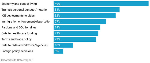 Welcome to this week’s edition of Receipts. We’re sending this a day earlier than usual so I can weigh in on Trump’s State of the Union before we all move on to another crisis. My TL;DR: Any GOP pols waiting for Trump to pivot to affordability ahead of the midterms will have to keep waiting. In total, Trump dedicated less than 3 minutes of his interminably long speech to the topic. And when he did discuss it, he either downplayed cost-of-living concerns as a serious issue or rehashed the same ideas about how to address it—ideas that at best aren’t working to combat inflation, or are actually making it worse. But hey, Trump’s missed opportunity is the opposition’s gain. Or it could be, anyway, if Democrats figure out how to offer a more compelling alternative to voters. In future newsletters, I’ll delve into what that could involve—and what silly ideas Dems should resist. To follow our reporting and analysis on the issues that matter most in the midterms, I hope you’ll consider subscribing to Bulwark+ if you don’t already do so. Upgrade your subscription here and see what you think: The Trump ‘Affordability’ Pivot That Never CameIn his record-breakingly-long SOTU, the president spent more time talking about Venezuela than prices.THERE’S AN OLD JOKE ABOUT two elderly ladies kvetching about a meal. “Oy, the food at this place is really terrible,” one complains. The other responds, “And such small portions!” The same could be said of President Trump’s affordability comments at last night’s State of the Union, which were both brief and abysmal. Affordability is the issue for the 2026 midterms. In virtually every poll, with virtually every demographic, some version of “inflation/prices/cost of living/economic problems” tops the list of the most important challenges facing the country. It also tops the list of reasons Trump’s own voters are ditching him, according to polling from Morris Predictive Insights. And yet, according to the time-keepers from NBC News, in Trump’s record-long 108-minute SOTU speech, he spoke about affordability for a measly 2.9 minutes. For context, that’s just a few seconds longer than the time he spent celebrating the country’s Olympic achievements (2.2 minutes), and about half the time he spent talking about Venezuela (4.8 minutes). Even if you add in time he spent on the broader economy and taxes, this total (7.1 minutes) is still less than the amount of time he spent talking about national security (8.5 minutes).¹ If Republican lawmakers were hoping Trump would spend his ample time on the things their voters care about, they must have been disappointed. When he did touch on affordability, Trump questioned the very notion that it was a legitimate issue at all. He claimed that “affordability” problems were either created or imagined by Democrats, and naturally, that they have all been solved since he took office: |
