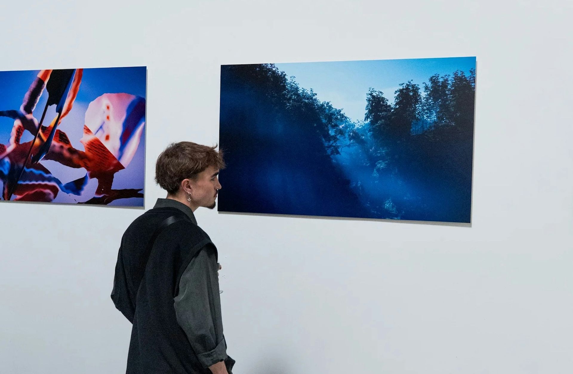 A visitor to the Tales From the Real World exhibition at la Chapelle des Trinitaires, Arles, France.