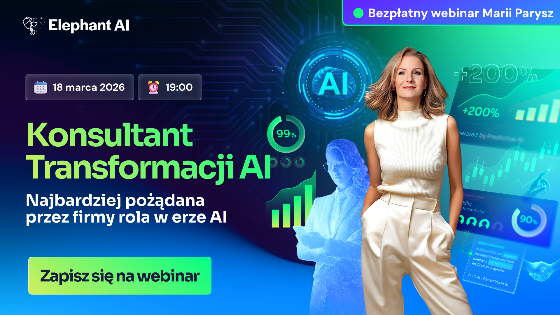 Zaplanuj swój czas i dołącz do nas na żywo. Tylko zapisani otrzymają ekskluzywną zniżkę na pełny program "Konsultant Transformacji AI". Oferta wygasa dokładnie po 72 godzinach od zakończenia webinaru.