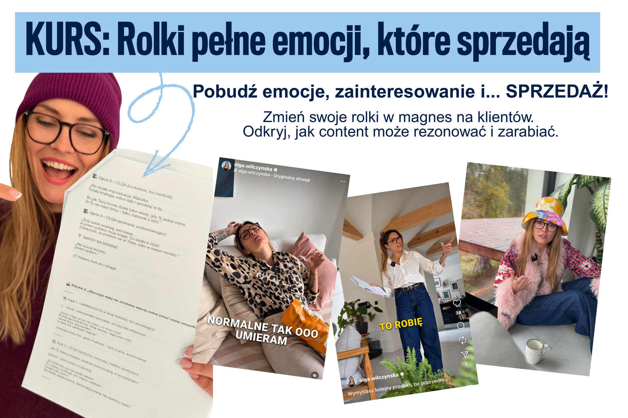 identyfikację - by odbiorca myślał „to o mnie”, napięcie - chciał wiedzieć, co go czeka dalej, decyzję - klikał, zapisywał się, kupował.
