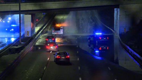 Water main break on overpass spills water onto I-93 in Quincy