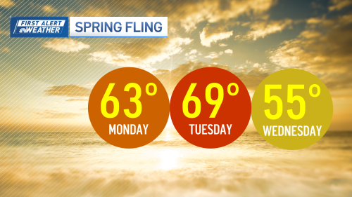 We get to enjoy a little spring fling this week with highs in the 60s Monday and getting close to 70 Tuesday. We know it won’t last long, so get out and enjoy as much as possible.