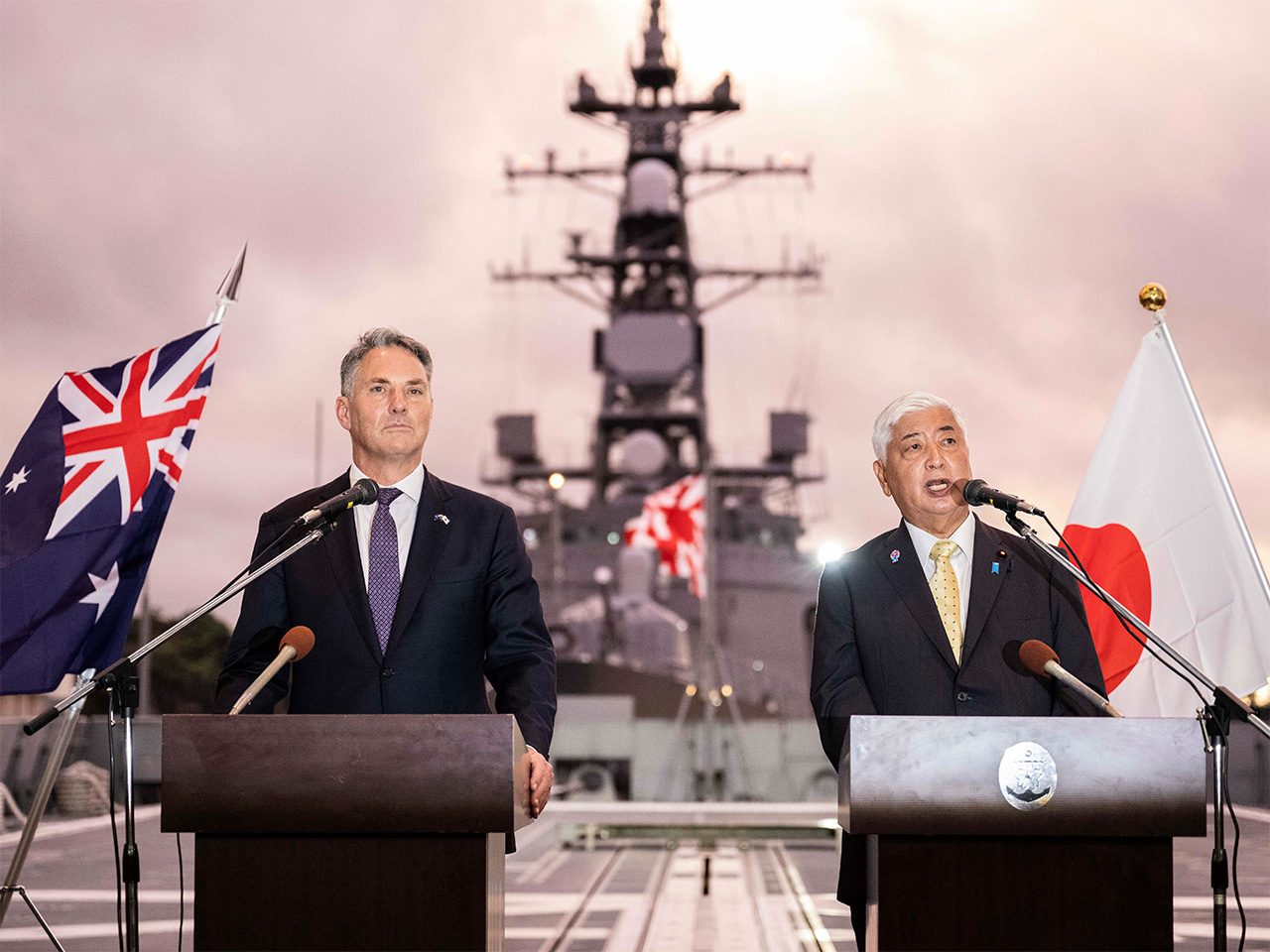 All aboard the friendship: Australian defence minister Richard Marles and Gen Nakatani
